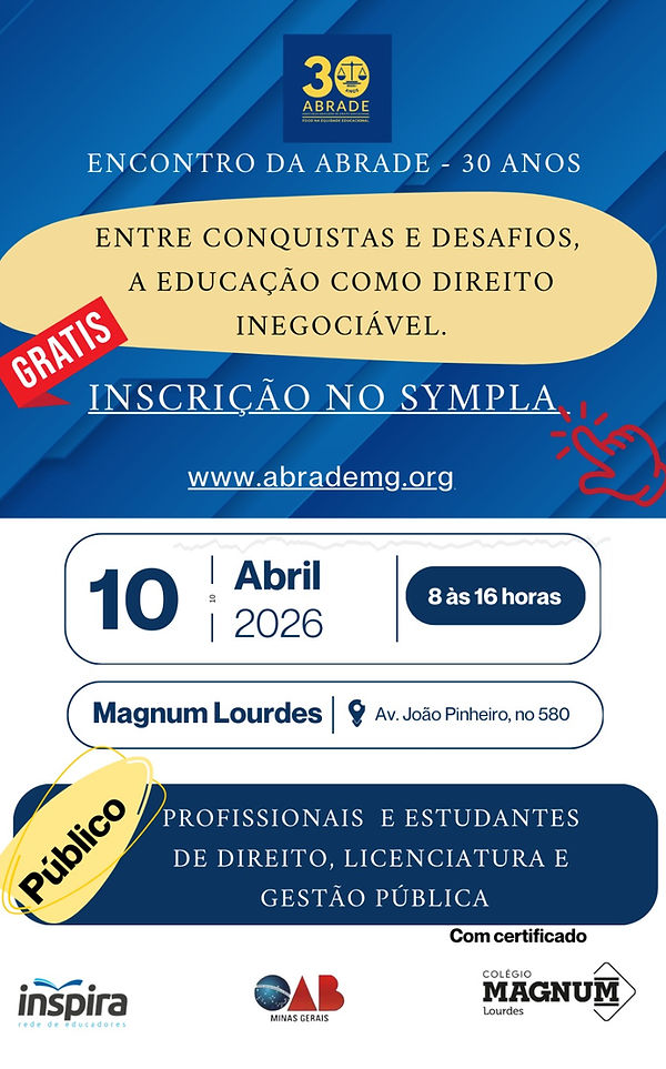 A Associação Brasileira de Direito Educacional - ABRADE, por meio da Seccional do Estado de São Paulo e suas Diretorias Adjuntas Regionais resolvem promover a partir de maio de 2021, um Ciclo de Debates sobre Direito Educacional que se destina a fomentar temáticas que surgem a partir das inquietações da área, em todos os seus níveis, para uma ampla reflexão e troca de experiências entre os associados e demais partes interessadas.