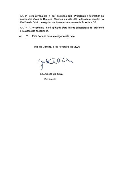 O Presidente Nacional da ABRADE, no uso de suas atribuições, nomeia o Presidente da Diretoria da SECCIONAL ABRADE no DISTRITO FEDERAL, confirmado no pleito do dia 25 de abril de 2022: